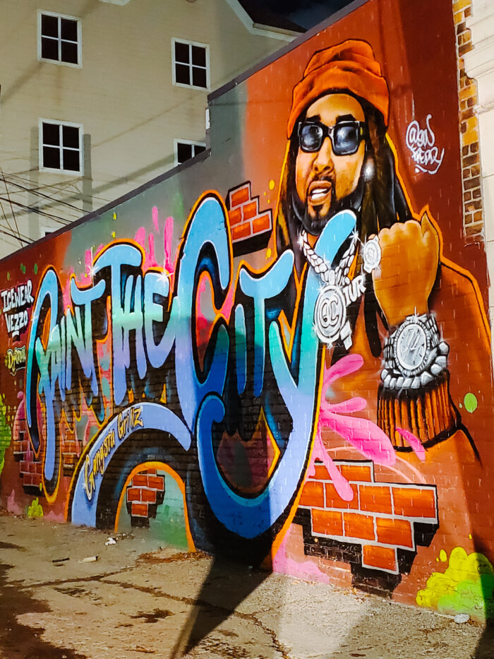 The mural is by Detroit artist Freddy Diaz (swfreddy on Instagram).