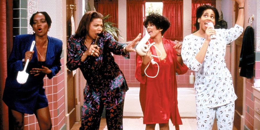 Feature image courtesy of Warner Bros. Entertainment. Living Single (1993) cast Erika Alexander, Queen Latifah, Kim Fields, and Kim Cole.